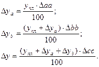 Δуb= ½ Δb·(аос1 +а1с0) + 1/3 Δа·Δb·Δс;