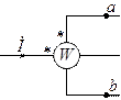 Ваттметр имеет четыре вывода: два для измерения тока и два для измерения напряжения. Выводами для измерения тока он включается в ветвь цепи последовательно, как амперметр. Он измеряет втекающий в точку (*) ток. Другие два вывода, предназначенные для измерения напряжения, включаются параллельно ветви цепи. Если точка (*) стоит около точки