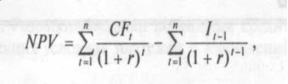 Если проект предполагает не разовую инвестицию, а последовательное инвестирование финансовых ресурсов в течение т месяцев, то формула для расчета NPV модифицируется следующим образом: