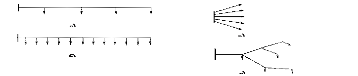 Виды схем: а- магистраль; б- линия с равномерно распределенной нагрузкой; в- радиальная схема; г- радиально-магистральная схема.