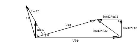 Напряжение U 1ф соединяет начало и конец суммируемых векторов U 2ф, I 12´ r 12, I 12´ jx 12.