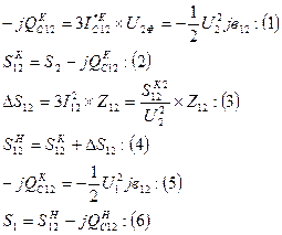 Предположим, что U 2= U ном (7) и определим потоки и потери мощности аналогично выражениям (1)-(4), используя (7) получим: