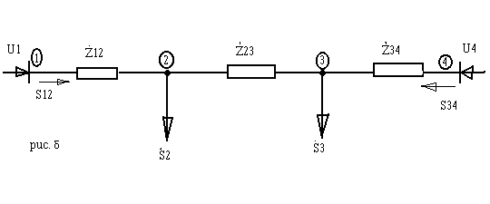 1. напряжения в узловых точках по заданному напряжению в точках питания А и найденных на первом этапе мощностям в начале каждого из элементов схемы.