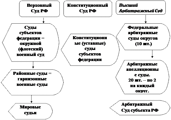 Судебная система – совокупность судебных органов, предназначенных для осуществления судебной власти. Установлена ФКЗ «О судебной системе РФ» и Конституцией РФ.