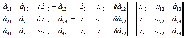 5) Если элементы какого-либо ряда определителя представляют собой суммы двух слагаемых, то определитель может быть разложен на сумму двух соответствующих определителей.