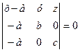 Раскрыв определитель имеем: bcx–abc+abz+acy = 0, то есть bcx+acy+abz=abc