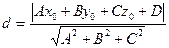 d =│x0cosα + y0cosβ + z0cosγ – p│