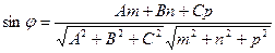 Обозначим через φ угол между плоскостью Q и прямой L, и через α – угол между векторами n(A;B;C) и m(m;n;p), тогда