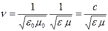 В вакууме (e = 1, m = l) скорость распространения электромагнитных волн совпадает со скоростью света(с), что согласуется с теорией Максвелла о том,
