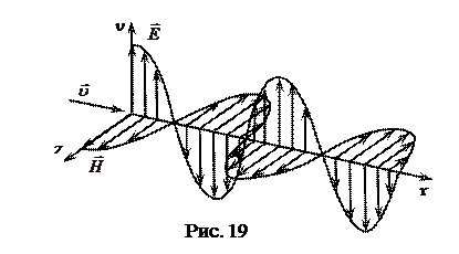 колеблются в одинаковых фазах (рис. 19), то есть значения напряженностей Е и Н электрического и магнитного полей одновременно достигают максимума и одновременно обращаются в нуль, причем мгновенные значения Е и Н связаны соотношением: