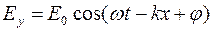 Уравнение плоской монохроматической электромагнитной волны (индексы у и z при Е и Н подчеркивают лишь то, что векторы