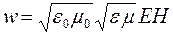 Учитывая выражение связи между величинами Е и Н, можно получить, что суммарная плотность энергии электрического и магнитного полей: