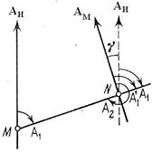 Как следует из рисунка зависимость между прямым и обратным азимутами линии MN определится выражением