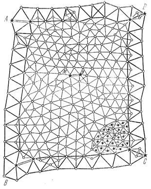 Для непосредственного обеспечения топографических и инженерно–технических работ создают съемочные сети в виде микротриангуляции теодолитных, тахеометрических и мензульных работ, а также различных засечек.