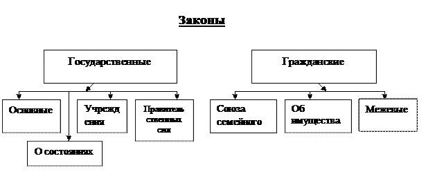 К государственным законам относились также законы предохранительные (уставы благочиния) и законы уголовные.