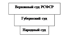 Таким образом, при формировании советской судебной системы были нарушены все демократические принципы судопроизводства и судоустройства. Суд приобрел классовый характер, попав в зависимость от местных органов власти.