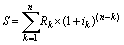 Полученное значение (22,32 тыс. руб.) заметно больше арифметической суммы отдельных членов ренты (15 тыс. руб.), однако она значительно меньше той гипотетической суммы, которая могла быть получена, если бы мы захотели нарастить по ставке 20% все 15 тыс. руб. за весь срок ренты (15*; 1,25). Наращенная сумма ренты S получена путем последовательного начисления процентов по каждому члену ренты и последующего суммирования полученых результатов. Введя обозначение k = номеру периода ренты, в наиболее общей форме данный процесс можно выразить следующей формулой: