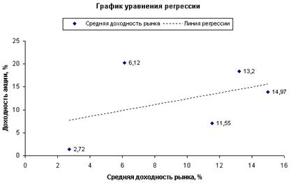 Рисунок 5.6.1. Графическое представление взаимосвязи между доходностью отдельной акции и средней рыночной доходностью