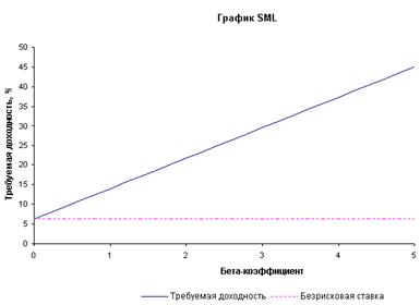 Рисунок 5.6.2. Взаимосвязь уровня β -коэффициента и требуемой доходности
