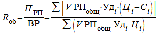 Она показывает, сколько предприятие имеет прибыли с каждого рубля, затраченного на производство и реализацию продукции. Может рассчитываться в целом по предприятию, отдельным его сегментам и видам продукции.