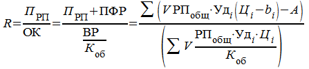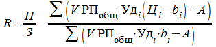 Для анализа рентабельности продукции в целом по предприятию используется следующая факторная модель: