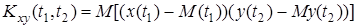 Отметим, что K(t,t), т.е. t1=t2 это есть дисперсия в момент времени Dx(t). Корреляционная функция описывает статистическую связь значений процессов в разные моменты времени.