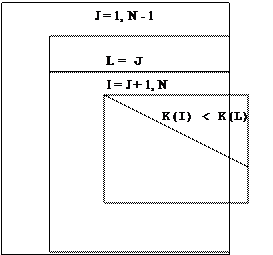Структурограмма алгоритма сортировки методом выбора с обменом приведена на следующем рисунке.