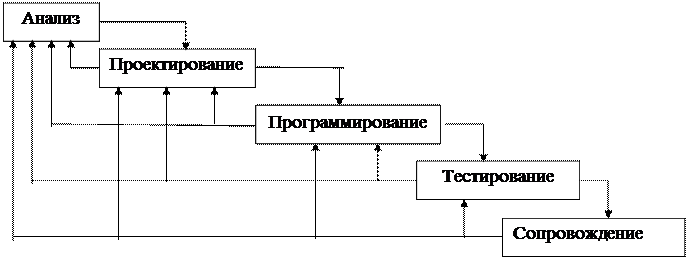 В процессе создания ПО постоянно возникает потребность в возврате к предыдущим этапам и уточнения или пересмотре ранее принятых решений. В результате реальный процесс создания ПО принимал вид каскадно-возвратного подхода: