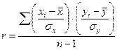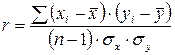 или поскольку sx и sy для данных рядов являются постоянными и могут быть вынесены за скобку, то формула линейного коэффициента корреляции приобретает следующий вид: