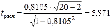 t табл для числа степеней свободы 18 и уровня значимости 0,01 равно 2,878. Таким образом, лишь с вероятностью меньшей 1% можно утверждать, что величина t = 5,871 могла появиться в силу случайностей выборки. Такое событие является маловероятным и можно считать с вероятностью 99%, что в генеральной совокупности действительно существует прямая зависимость между изучаемыми признаками, т.е. отличие выборочного коэффициента корреляции от нуля является существенным.