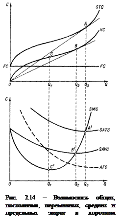 На рис. 2.14,а представлены кривые SRTC, VC и FC для производств с меняющейся отдачей переменного ресурса.