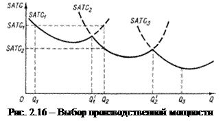 На рис. 2.16 представлены кривые средних краткосрочных расходов каждого из этих трех типов предприятий. Очевидно, что, если в длительном периоде планируется выпуск в объеме Q 1, предпочтительным окажется предприятие первого типа, если в объеме Q 2 - второго, и т.д.