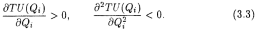 Математически это означает, что на участке от нуля до Q'A и первая, и вторая частные производные функции общей полезности по объему потребления данного блага положительны: