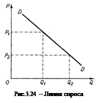3) графическим. На рис. 3.24 линия DD представляет графическое отображение функции спроса от цены. Она называется линией спроса. Абсциссы точек линии спроса характеризуют объем спроса, а ординаты - цены спроса.