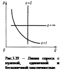 Линии спроса с нулевой, единичной и бесконечной эластичностью показаны на рис.3.29.
