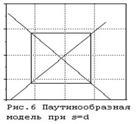 Если же s<d, то в этом случае колебания цен увеличиваются, а при s=d, как и в модели А, происходит колебание цен с постоянной амплитудой. Как видим, изменение гипотез модели А привело не только к смене направления “наматывая” спирали, но, следовательно, и к изменению условия сходимости итерационного процесса на противоположное.