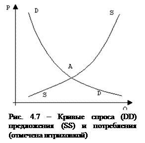 Если же спрос меньше предложения (т.е. имеет место избыточное предложение товара), то потребление равно спросу, а непроданный товар приводит к затовариванию.