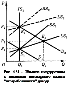 На рис. 4.31 линия D1 - это первоначальное положение линии спроса, линии IS1, SS1, LS1 -линии предложения в мгновенном, коротком и длительном периодах. Первоначальное равновесие характеризуется объемом рынка Q1 и равновесной ценой P1.