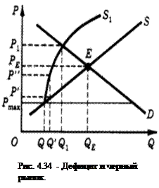 На черном рынке установится цена P1, превышающая как предельную цену Рmax, так и равновесную цену PE. Объем продаж Q1 больше того объема Q, который был бы реализован на легальном рынке по предельной цене Pmax, но меньше равновесного объема QE.