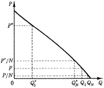 Объемы Q1 и QN, соответствующие уровням цены Р и P/N, различаются незначительно, если цена Р близка к нулю. Для высокой цены Р * эффект коллективной оплаты значителен.