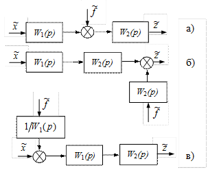 Если же узел перенести через звено W 1 (p) против хода распространения сигнала, то, как легко понять из рис. II.18 в, надо ответвляющийся сигнал умножить на передаточную функцию W 1 (p) звена, через которой перенесем узел.