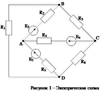 При расчете сложных электрических цепей постоянного тока пользуются законами Кирхгофа. Рассмотрим электрическую схему, приведенную на рисунке 1.