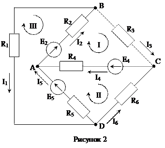 ветвей. Для каждой ветви произвольно выбираем направления токов, а для каждого контура – направления обхода, как это показано на рисунке 2.