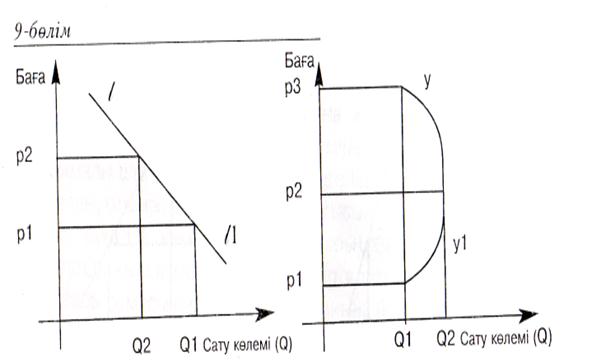 Сондықтан рынокта әрекеттенушілер тұтынушылардың баға өзгерісіне деген икемділігін (сезімталдығын) білгені жөн. Төменде 3-суреттерде сұраныс ирегінің екі түрін талдайық. 3 а суретте р1 нуктедегі бағаны р2 нуктеге дейін көтеріп, сұраныс өлшемін Q1 ден Q2 дейін шамалы төмендегенін көрсетіп отыр. Ал, 3 б-сурет бағаны шамамен сондай-ақ өзгерту арқылы сұраныстың тым астам төмендеуін (сұранысқа әсер ететін басқа факторларды өзгеріссіз қалдырып) бағаның осы өзгерісі сұранысты өзгертпеген болса, онда икемсіз сұраныс болатын еді. Ал біздің 3-суреттерімізде азды-көпті өзгерді, бұны икемді сұраныс деп атайды. 3 а-суретте сұраныстың бағаға деген икемділігі төмендеу, 3 б-суретте, керісінше, икемділігі жоғары. Сұраныстың икемділігі мөлшерін (Сu) есептеп шығаруға болады. Ол үшін мына формула қолданылады: