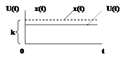 W(p)=k – передаточная функция усилительного звена. Пусть U(t)=1(t), тогда X(t)=k.