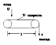Конвейер, V – скорость ленты, l – длина конвейера.