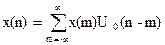 Поскольку h(n) – отклик системы на последовательность U0(n), а параметры системы постоянны, то h(n-m) будет откликами на последовательность U0(n-m). Из свойства линейности следует, что откликом на последовательность x(m)U0(n-m) должна быть последовательность x(m)h(n-m). Поэтому отклик на x(n) будет равен: