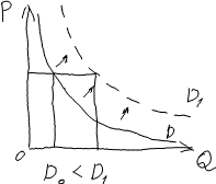 Спрос может изменяться при постоянной цене. Цена может изменяться при постоянном спросе. Это может быть результатом т.н. не ценового изменения спроса (D1).
