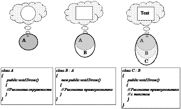 Рис.1. Переопределение функции Draw в классах, связанных отношением наследования.