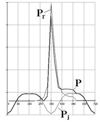 Рис. 1.26. Графики сил PГ, Рj и Р по углу поворота коленчатого вала